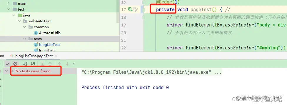 一些问题,在实际测试的时候,我发现当用private修饰测试方法时