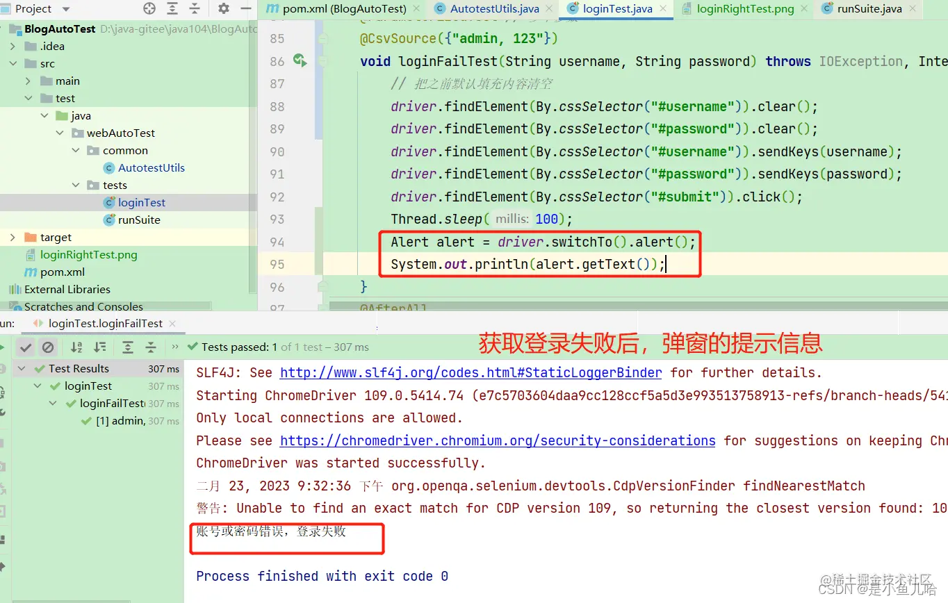 Alert alert1 = driver.switchTo().alert(); // 点击完——确定要删除该博客——》在未登录状态,会出现下一个弹窗