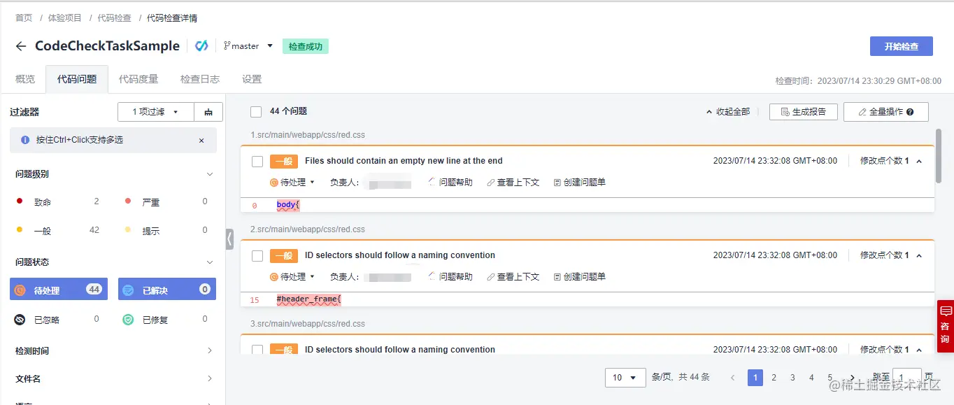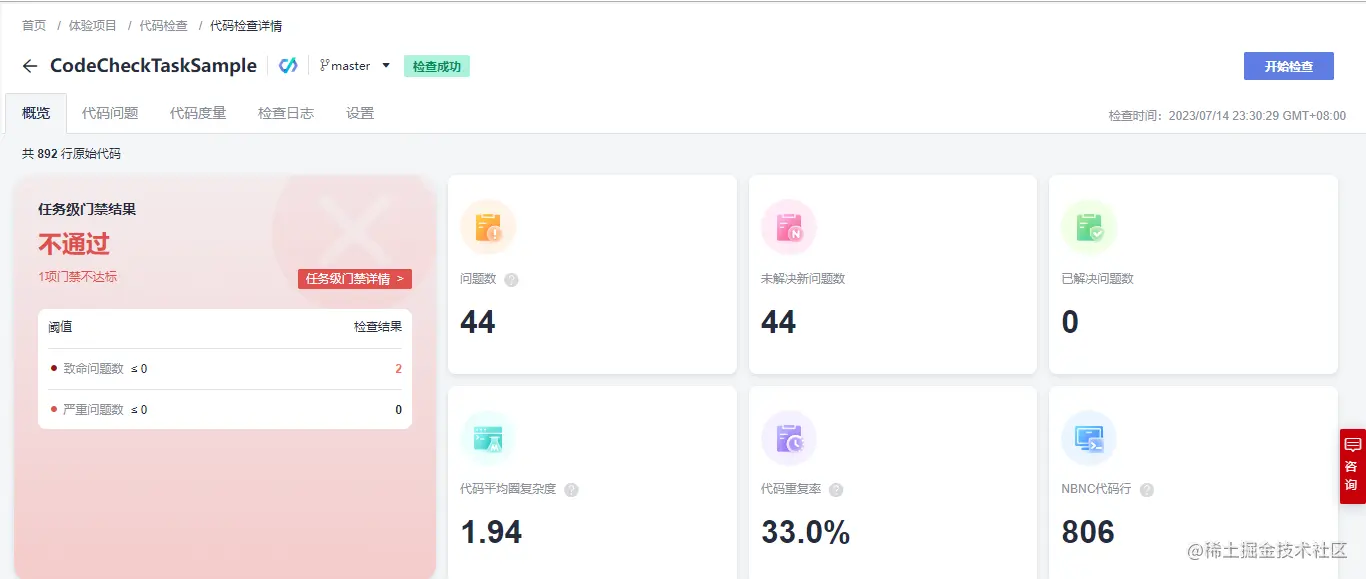 等待检查完成,可以点击任务名称查看任务详情: