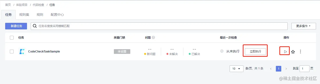 点击“立即使用”进入服务内部,本次我们采用现有的demo项目进行体验。直接点击“立即执行”按钮或则“开始检查”按钮,开始执行扫描任务: