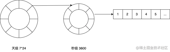 如果要将时间精度设为秒,那么整个时间轮将需要 86400 个单位的时间刻度,此时时间轮算法的遍历效率将会大打折扣。那么如何解决这个问题呢,可以采用分层时间轮算法,多个时间轮相互配合来完成任务。