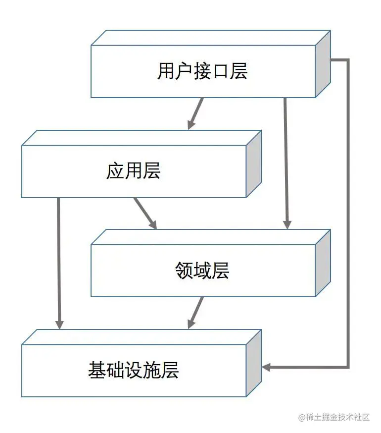 应用层通常是用户接口层的直接使用者。但是在应用层中并不实现真正的业务规则,而是根据实际的 use case 来调用领域层提供的能力,可以理解为工作编排。