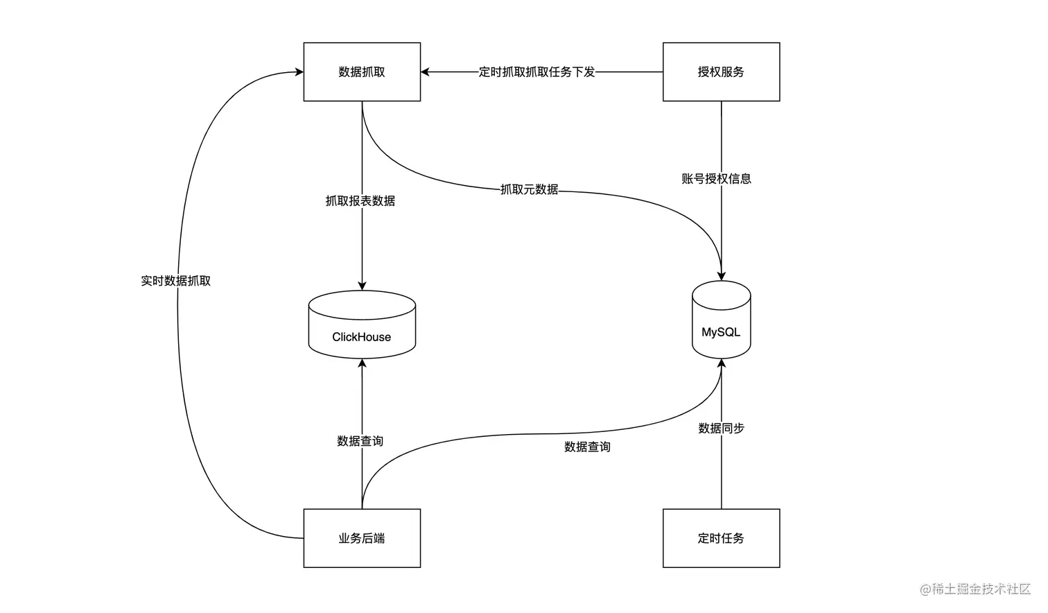 针对耦合严重、定时任务过多问题: 服务拆分,根据业务功能拆分为授权服务、数据抓取服务、业务后端服务和少量定时任务,各类服务各司其职,职责单一;