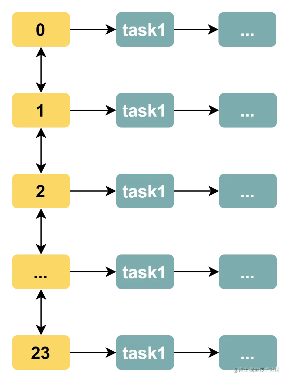 时间轮算法的核心是:轮询时不再遍历所有任务,而是仅仅遍历时间刻度。好比指针不断在时钟上旋转,如果发现某一时刻上有任务,那么就会执行该任务。显而易见,时间轮算法解决了遍历效率低的问题。如果以小时为单位,有 10w 个任务,我们不需要遍历所有任务,仅仅需要遍历 24 个时间刻度。