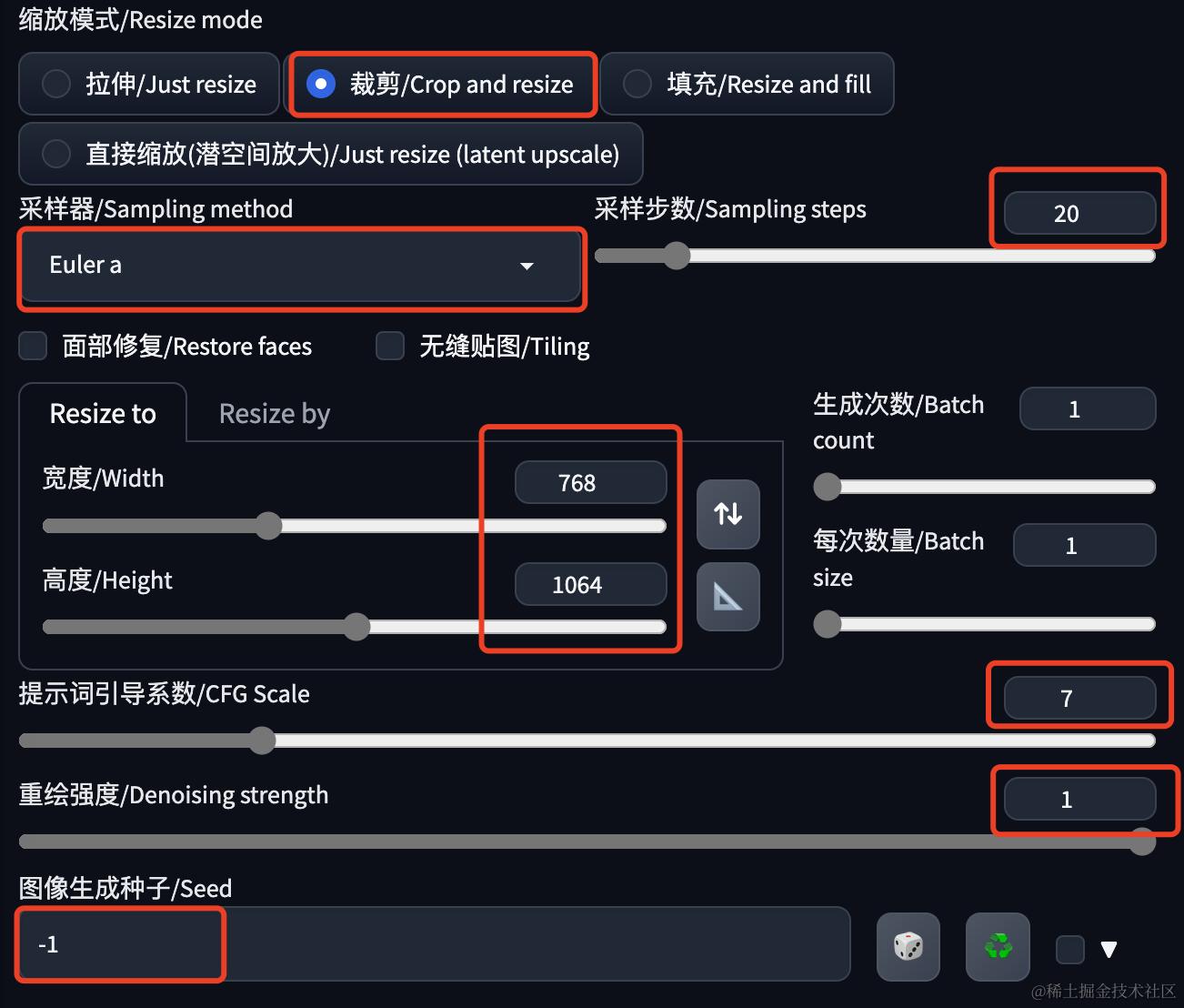 图像生成种子:-1,代表随机种子,建议不要固定,否则每次出来的都一样。