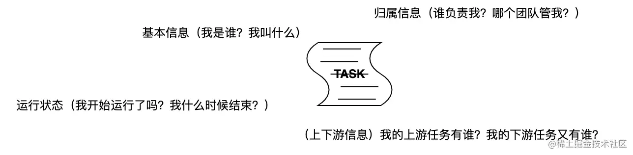 即产出数据的任务,通过数据任务的元信息,可构建整条数据生产链路的完整DAG。在本平台中,所涉及的任务元信息一般需要包含以下内容: