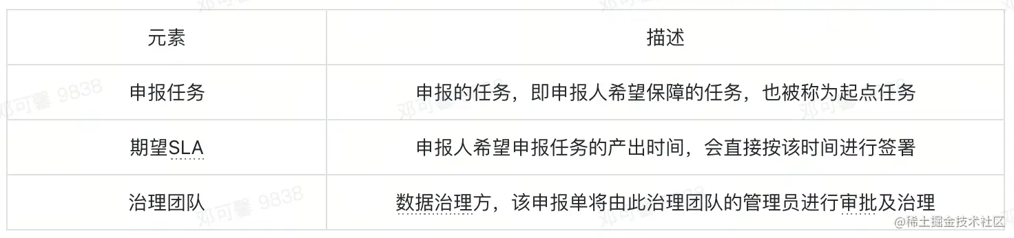 - 申报人:即SLA提申报的人,一般是数据业务方,其提申报的目的是保障业务数据的SLA;