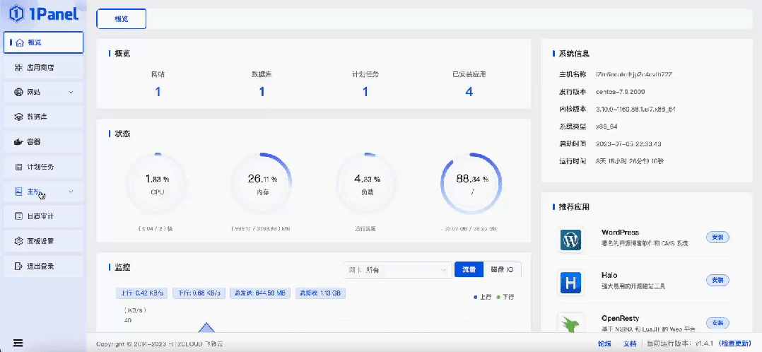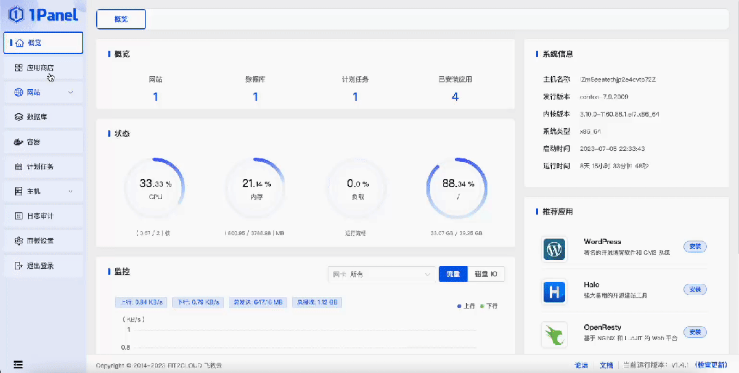 2023年7月17日,现代化、开源的Linux服务器运维管理面板1Panel正式发布v1.4.0版本。