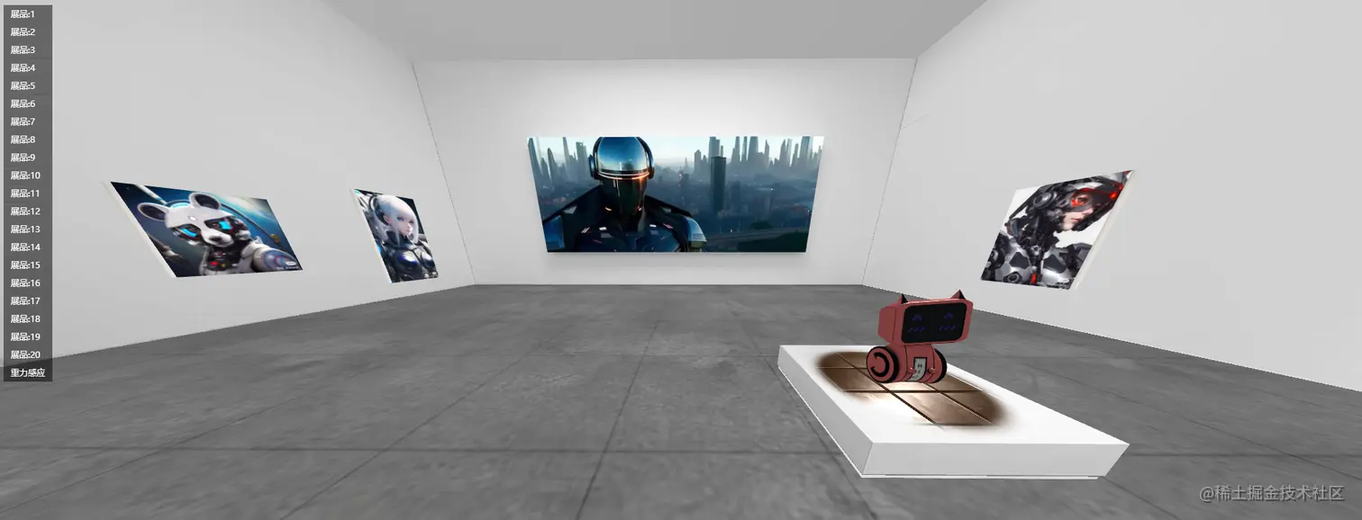 可以上传3D模型并自由设置展品即可生成一个展厅页面