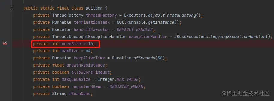所以看一下 Builder 里面的 coreSize 是怎么来的。