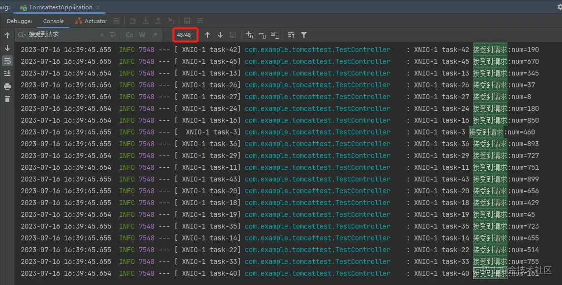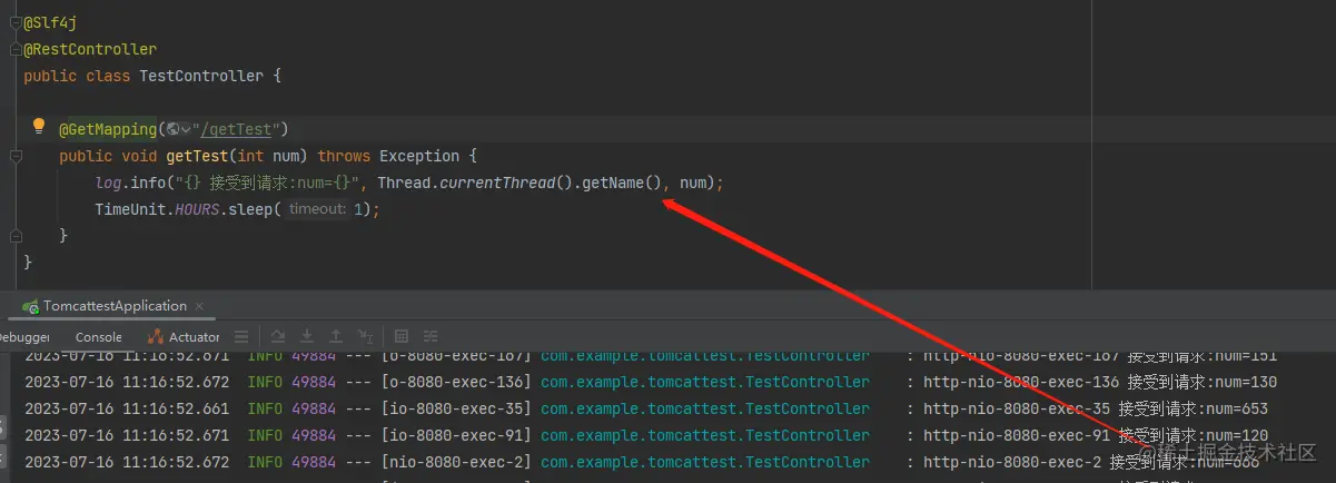 log.info("{} 接受到请求:num={}", Thread.currentThread().getName(), num);