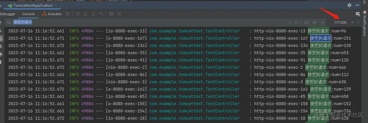 因为我们前面验证了,Tomcat 可以同时间处理 200 个请求,而它的线程池核心线程数只有 10,最大线程数是 200。