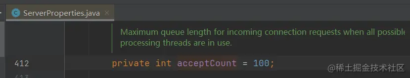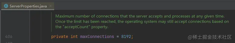 因为它的默认值是 8192,比最大线程数 200 大,这个参数并没有限制到我们,所以我们没有关注到它。