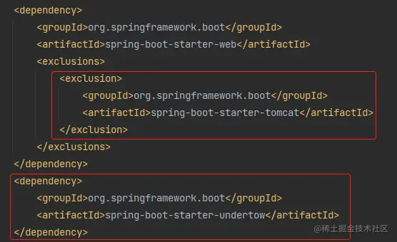 从 Tomcat 换成 Undertow,只需要修改 Maven 依赖即可,其他什么都不需要动: