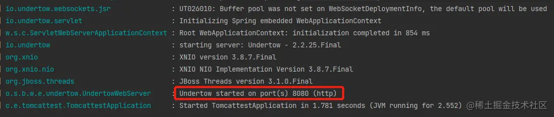 再次启动项目,从日志可以发现已经修改为了 Undertow 容器: