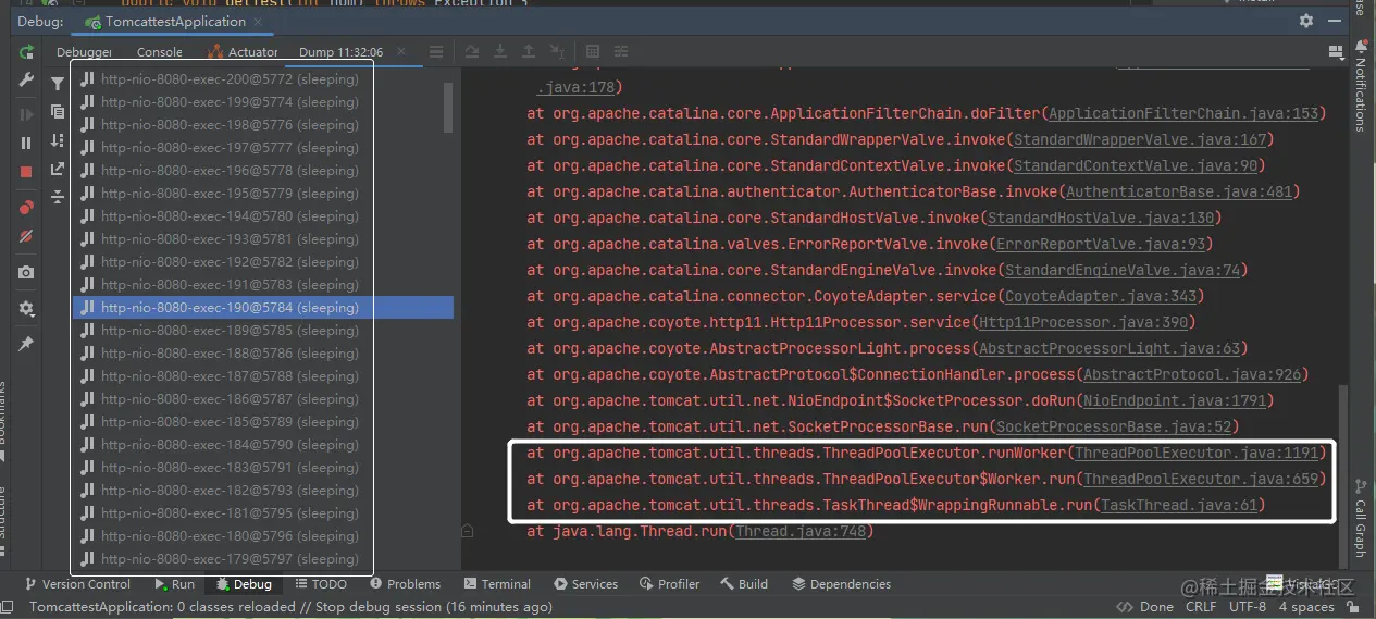 如果你熟悉 JDK 线程池源码的话,调试 Tomcat 的线程池,那个感觉,就像是回家一样。