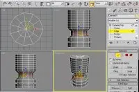 步骤 6返回到“边缘”子级别,从下方选择第 6、7 和 8 行边(按住 CTRL 键,同时选择三行上的一条边,然后单击“循环”按钮)。使用“统一缩放”缩小行。若要确保在所有边上均等地缩小它们,请在“透视”或“顶部”视口上缩小它们。
