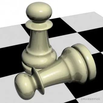 步骤 20按 F9 快速渲染以查看最终结果。添加一些类似象牙的材质(即镜面反射级别为 125、光泽度为 50 的 Phong 材质和反射槽中的衰减/菲涅耳贴图)后,渲染应类似于右侧的图像。(单击缩略图查看大图。查看我的创建逼真的玻璃对象教程,将这个棋子变成玻璃棋子。
