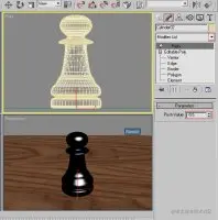 步骤 10让我们尝试另一个我喜欢用来使玻璃更逼真的技巧,尽管它会使玻璃物体成为空心物体(这对于许多玻璃物体来说很好,甚至经常需要)。选择对象,然后按 Ctrl-V(选择“复制”并单击“确定”)进行克隆。将 Push 修改器应用于克隆并将 push 值设置为 -0.5(渲染后尝试其他值以检查哪个值最适合您的模型)。