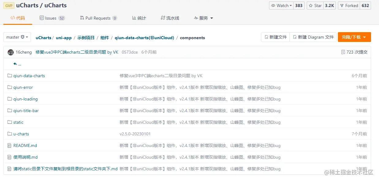 组件代码,我直接在 uCharts的Gitee地址 上找的。