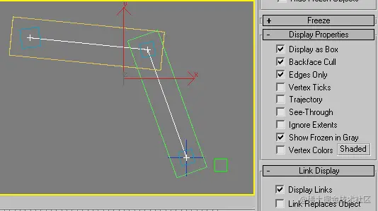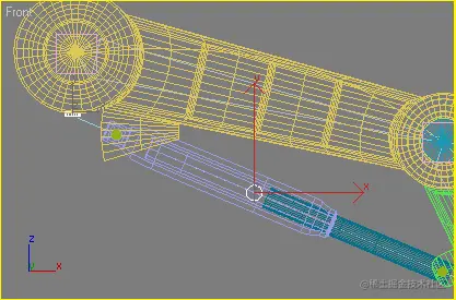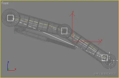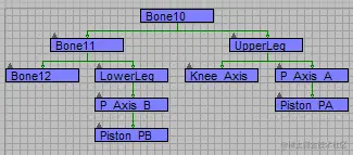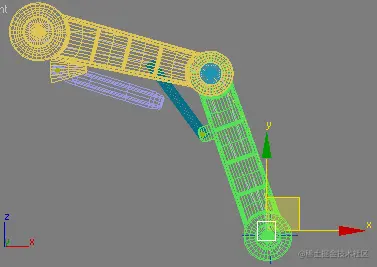 我们将使用相同的选择和链接方法将对象链接到骨骼,而不是使用 Skin 修改器。将大腿链接到上骨骼,并将小腿链接到下骨骼。