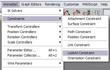 我们需要添加两个 Look Look T 约束,一个用于活塞的每个部分。选择Piston_PA,然后从动画菜单的约束部分中选择查看,如下图 5f 所示。