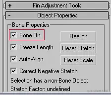 如果您的机器人具有复杂的几何体,并且对单个对象进行动画处理会大大减慢计算机的速度,则可以将 3D Studio Max 配置为将对象显示为骨骼。使用前面步骤中的示例腿时,您应该选择圆柱01、02、03、大腿和小腿,然后从“字符”菜单中选择骨骼工具。在“骨骼工具”对话框中启用“骨骼打开”选项,如下所示。