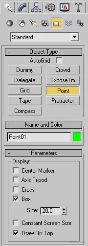 可以通过单击命令面板上“创建”选项卡的“帮助程序”部分中的“点”按钮,然后单击视口中的某处来创建点帮助程序,如下面的图 4b 所示。在这种情况下,我建议你把它放在腿底部的某个地方。使用前面讨论的相同选择和链接方法将 IK 链链接到点帮助程序,以便可以通过移动点帮助程序来对腿进行动画处理。