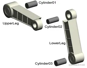 机器人通常由金属、塑料或其他一些不会变形的坚硬和刚性材料制成。下图显示了构成示例腿基础的五个对象。