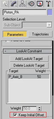 按键盘上的 H 键,选择P_Axis_B,然后单击“选择”按钮。Piston_PA现在改变了方向。要确保它指向原始方向,请启用命令面板“运动”选项卡上“参数”部分的“保持初始偏移”选项,如下图所示 5g。(添加“查看”约束时,参数部分会自动打开。