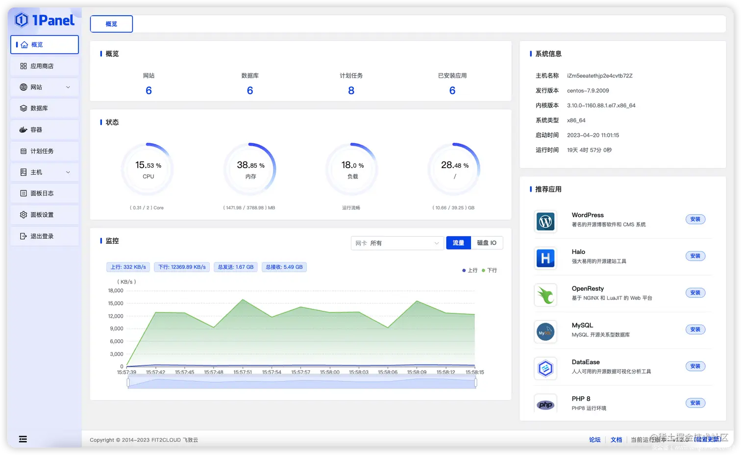 ● 优势:比较新的一个开源 Linux 面板,云原生风格设计简洁清晰。支持多语言、可定制化和分布式架构。