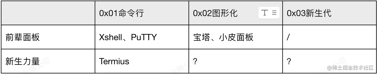 很久很久以前,大家对于服务器管理面板的需求还仅仅是一个 ssh client,通过 ssh 连接之后进行命令行操作。 前辈: Xshell,PuTTY 等