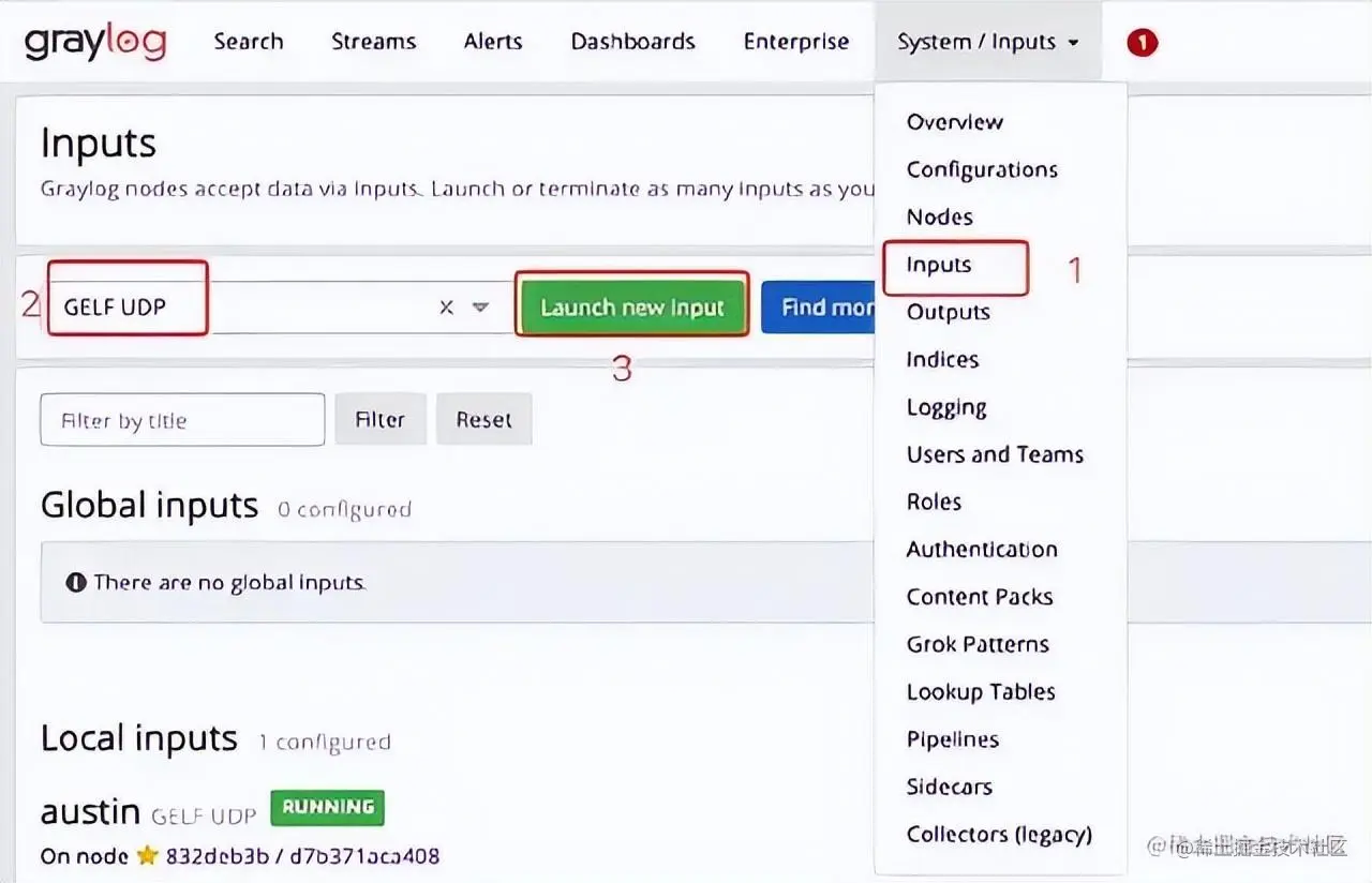随后,我们配置下 inputs 的配置,找到 GELF UDP ,然后点击 Launch new input ,只需要填写 Title 字段,保存就完事了(其他不用动)。