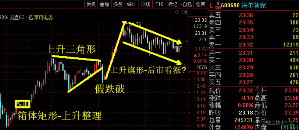教科书一般理论是:头肩底是常见的底部形态,但是实际在上涨中继过程中的震荡洗盘也会出现头肩底。三角形形态可以在任意阶段和位置都出现,不一定只出现在顶部和底部,本文后面剩佘关楗禸容请典形态分析继续阅渎完整全文,诸如此类的情况很多,有些人对教科书上没写的复杂异常形态表示不理解不接受或蒙圈,实际还是没有活学活用k线形态分析理论。