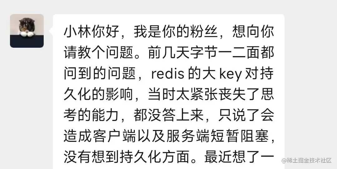 上周有位读者字节一二面时,被问到:Redis 的大 Key 对持久化有什么影响?