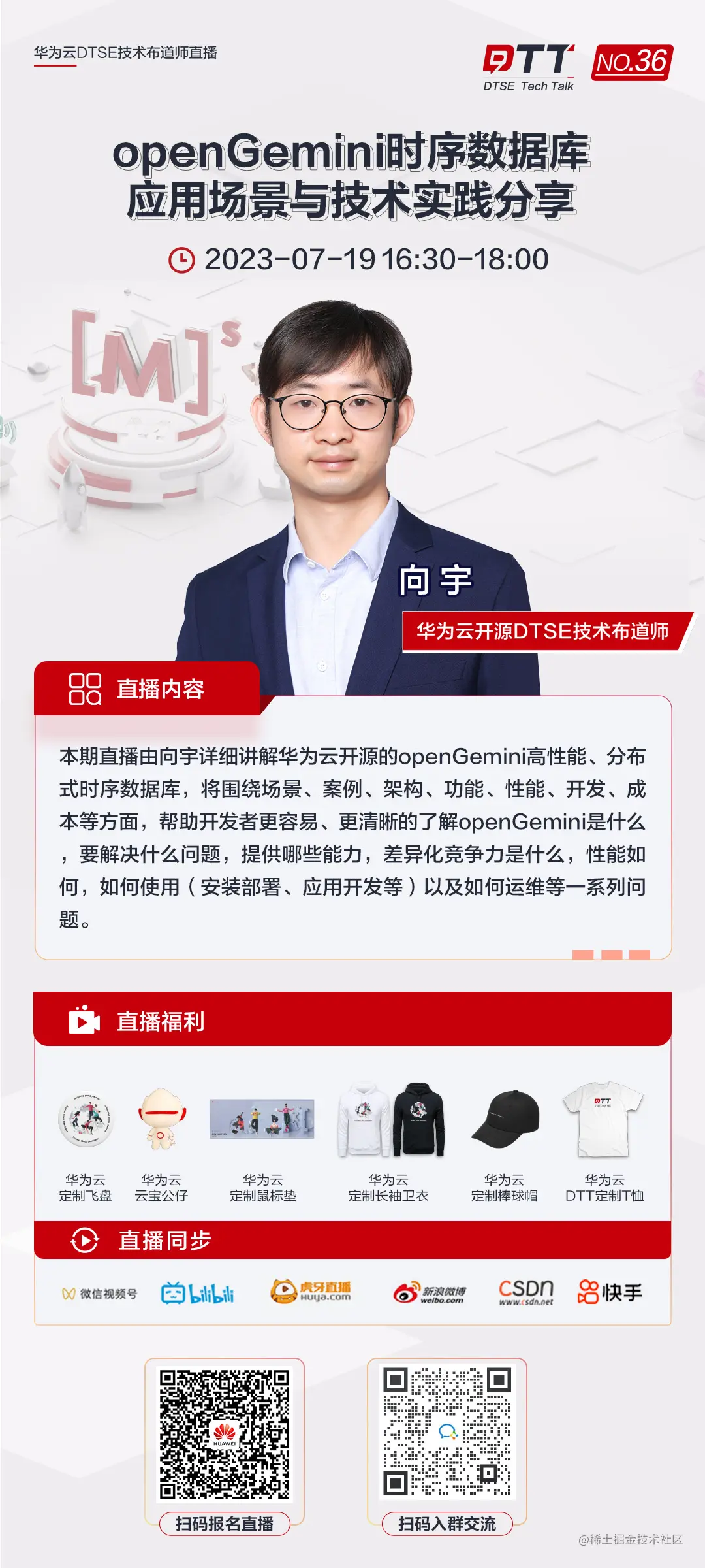 朋友们,我们最近跟DTT合作发起了一栏openGemini公开课直播!主题为《openGemini时序数据库应用场景与技术实践》。这期公开课将围绕openGemini的应用场景、案例、架构、功能、性能、开发、成本等多方面进行细致讲解,帮助开发者更容易、更清晰的了解openGemini是什么,要解决什么问题,提供哪些能力,差异化竞争力是什么,性能如何,如何使用(安装部署、应用开发等)以及如何运维等一系列问题。新人必看系列!诚邀大家前来互动聊天~