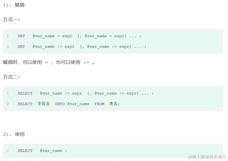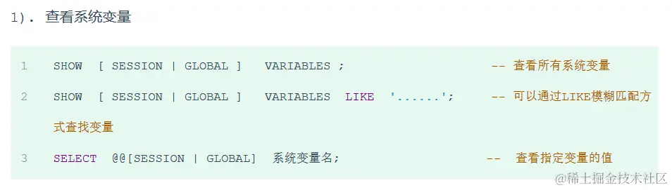 MySQL 中的变量分为三种: 系统变量、用户定义变量、局部变量