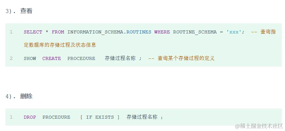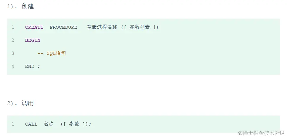 ; 二、存储过程的基本语法