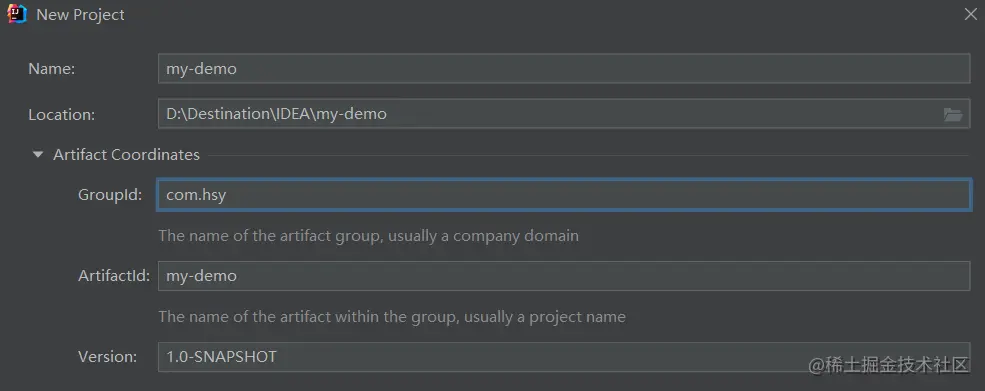 <artifactId>my-demo</artifactId> <!-- 建主项目时填的,建完自动生成 -->
