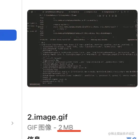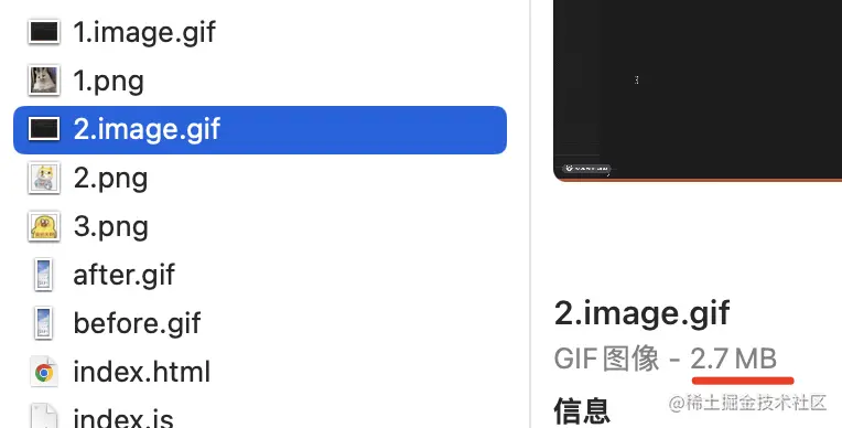node 执行这个文件,可以看到产生了 2.image.gif,只有 2.7 M
