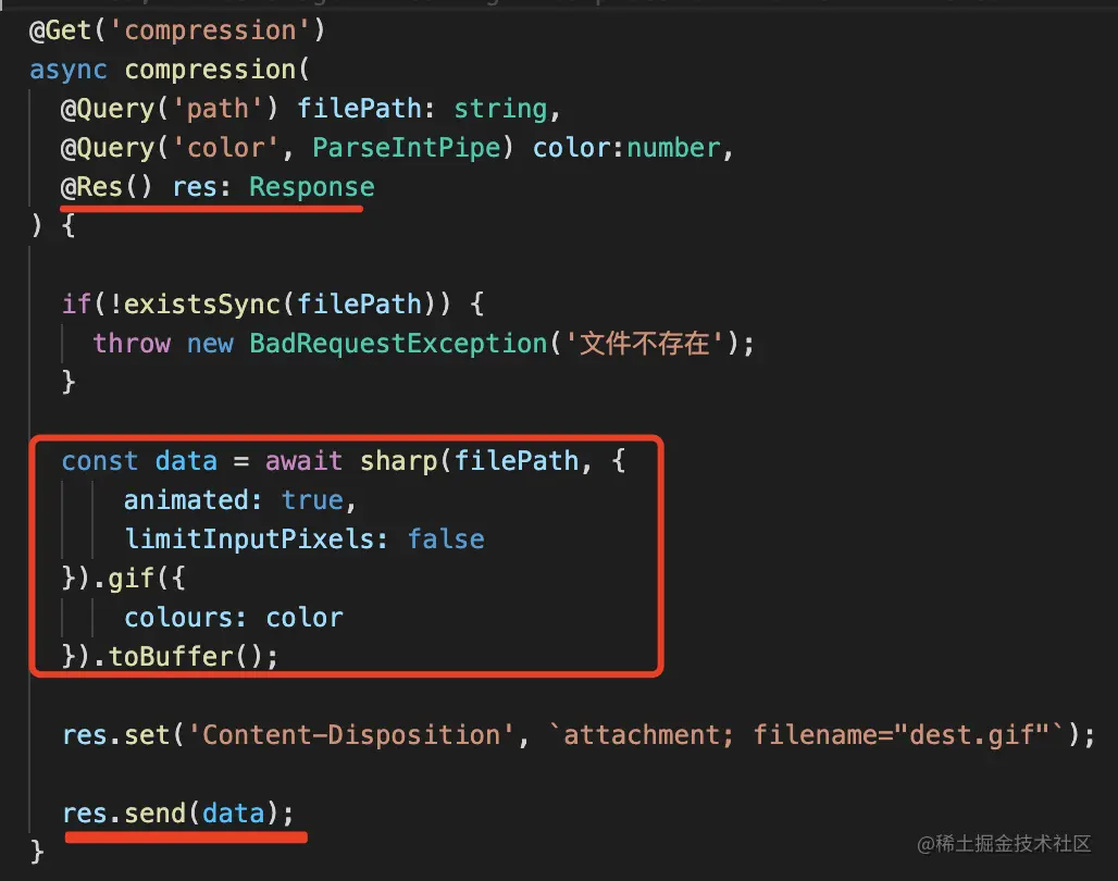 调用 sharp 来压缩 gif 图片,并注入 response 对象来返回文件下载响应: