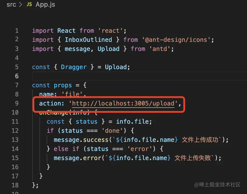 antd 会 post 方式请求 action 对应的接口,带上上传的文件: