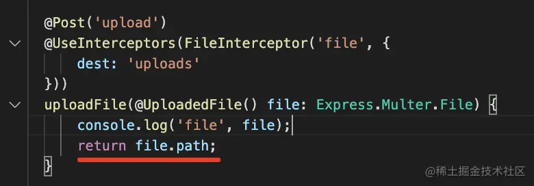 uploadFile(@UploadedFile() file: Express.Multer.File) {