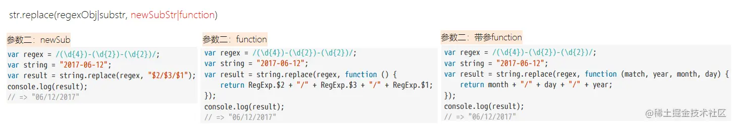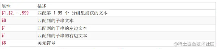 当第二个参数是字符串时,如下的字符有特殊的含义。其中,第二个是 $&: