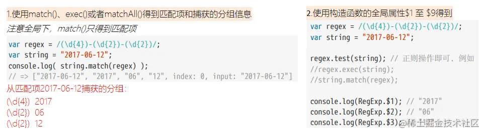 2.上文所谓的“与正则表达式匹配的内容”和“匹配项中分组捕获的内容”怎么理解?