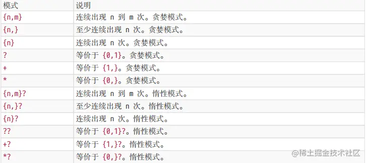 惰性匹配/\d{2,5}?/ 表示虽然 2 到 5 次都行,当 2 个就够的时候,我也不贪,我就取两个。
