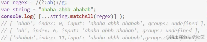 可以使用非捕获括号 (?:p) 和 (?:p1|p2|p3),如下代码,执行matchAll(),虽然有括号,但不会得到捕获的分组内容。