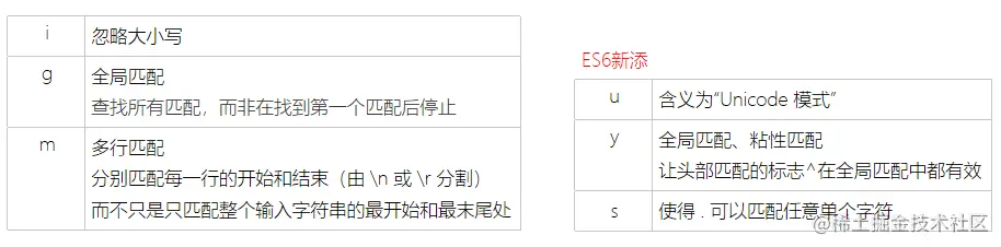 正则的 6 个修饰符(i、g、m、u、y、s)
