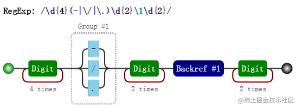 注意里面的 \1,表示的引用之前的那个分组 (-|\/|\.)。不管它匹配到什么(比如 -),\1 都匹配那个同样的具体某个字符。