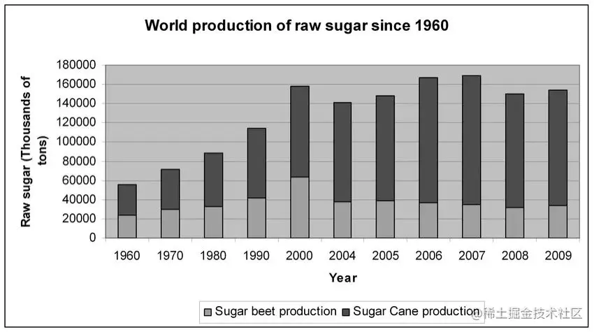从1960年到2000年,全球蔗糖的产量从0.4亿吨左右,攀升到近1.6亿吨,翻了四倍,与此同时人口只增长了一倍。